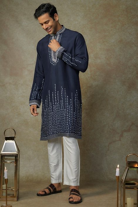 Indigo Bandhani Tussar Hand Embroidered Kurta Set