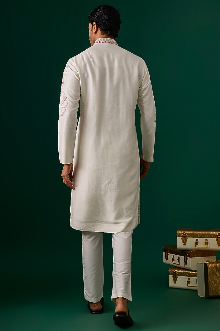 Off-White Tussar Hand & Machine Embroidered Kurta Set
